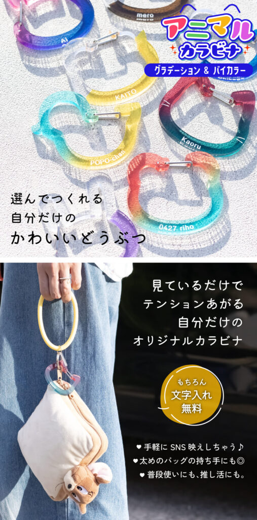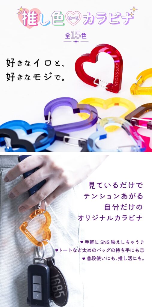 みなさま突然ですが「推し活」していますでしょうか?推し活とは二次元三次元問わず自分のイチオシを定めて応援し、日々の生活の原動力となり得るものを指します。人生を豊かにし心を癒し同士のお友達と盛り上がれるそんな「推し活」で必須なアイテム「カラビナ」のご紹介です。